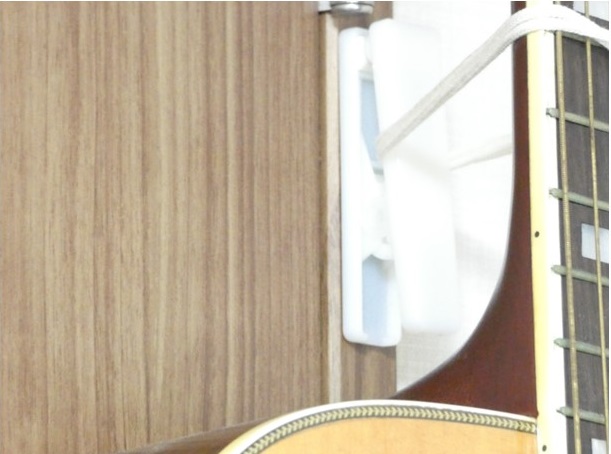 部屋のスペース確保の為にも、あまり弾いていない1台のアコースティックギターはラックの上に上げて壁に立てかける事としました。そしてこの大きな洗濯ばさみはこのギター固定用の治具として用いました。写真では解りずらいですが、ギターが乗っているラックの高さは120cm従って、このギターのヘッドは天井すれすれにまで届いております(もっと解りやすく写真撮れと言われそうですね。ご勘弁)。