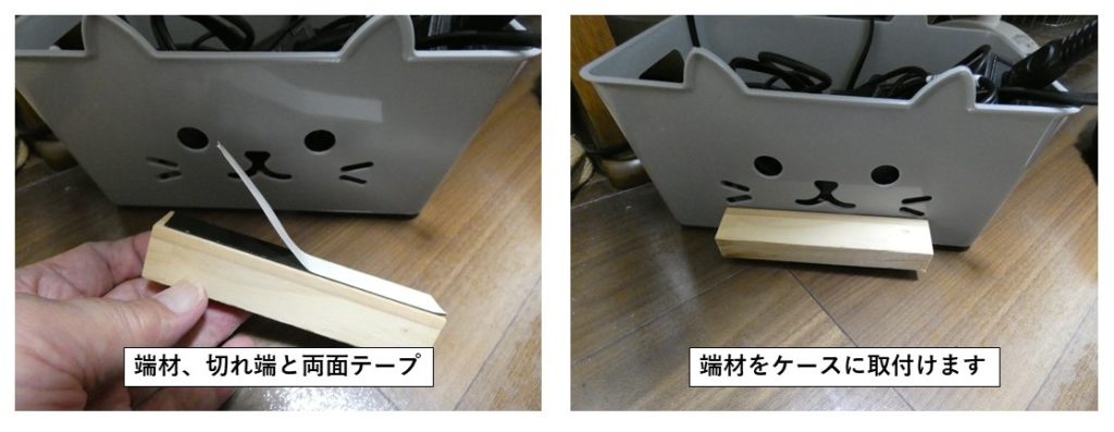 何かのDIYで残っていた端材で寸法が丁度よさそうなのがあったので、これを両面テープでBoxに接着しました。角度調整用です。設置位置はBoxの下側です。