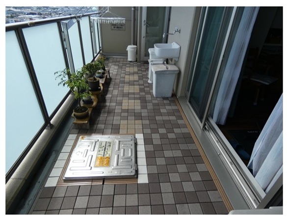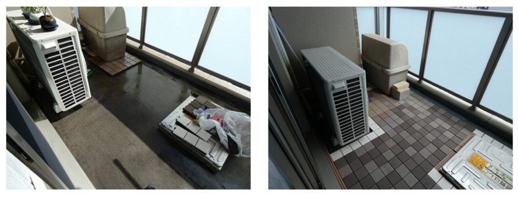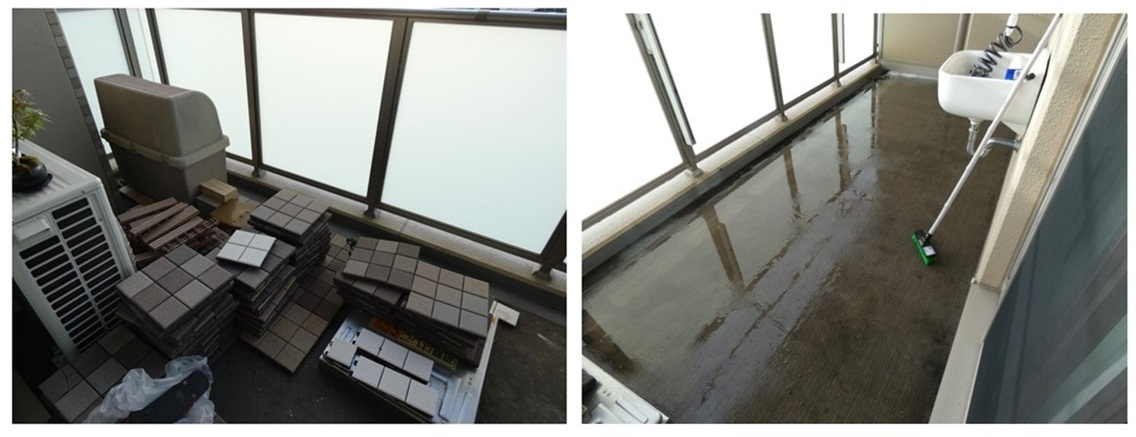 ベランダ清掃:半面清掃(バルコニータイル剥がし)