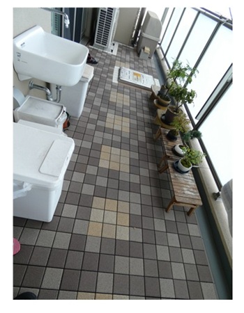 約8年程前に現在の自宅マンションを購入。その際、ベランダ全面にバルコニータイルを敷きました。大きくはないベランダですが、それでも前面にバルコニータイルを敷くとなると、業者の見積りは約30万円。ネットで敷きたいタイルの値段を調べ、ベランダ全面を覆う面積を自分で計算すると約10万円。流石に価格1/3の誘惑には勝てず、自分でバルコニータイルを敷くこととしました。そして休日1日をかけて、ベランダ全面へバルコニータイルを敷きました。