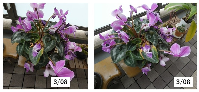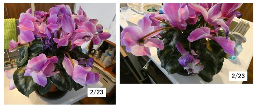 シクラメンは長い事咲くんですね。2月初旬から中旬でも下の写真の通りです。